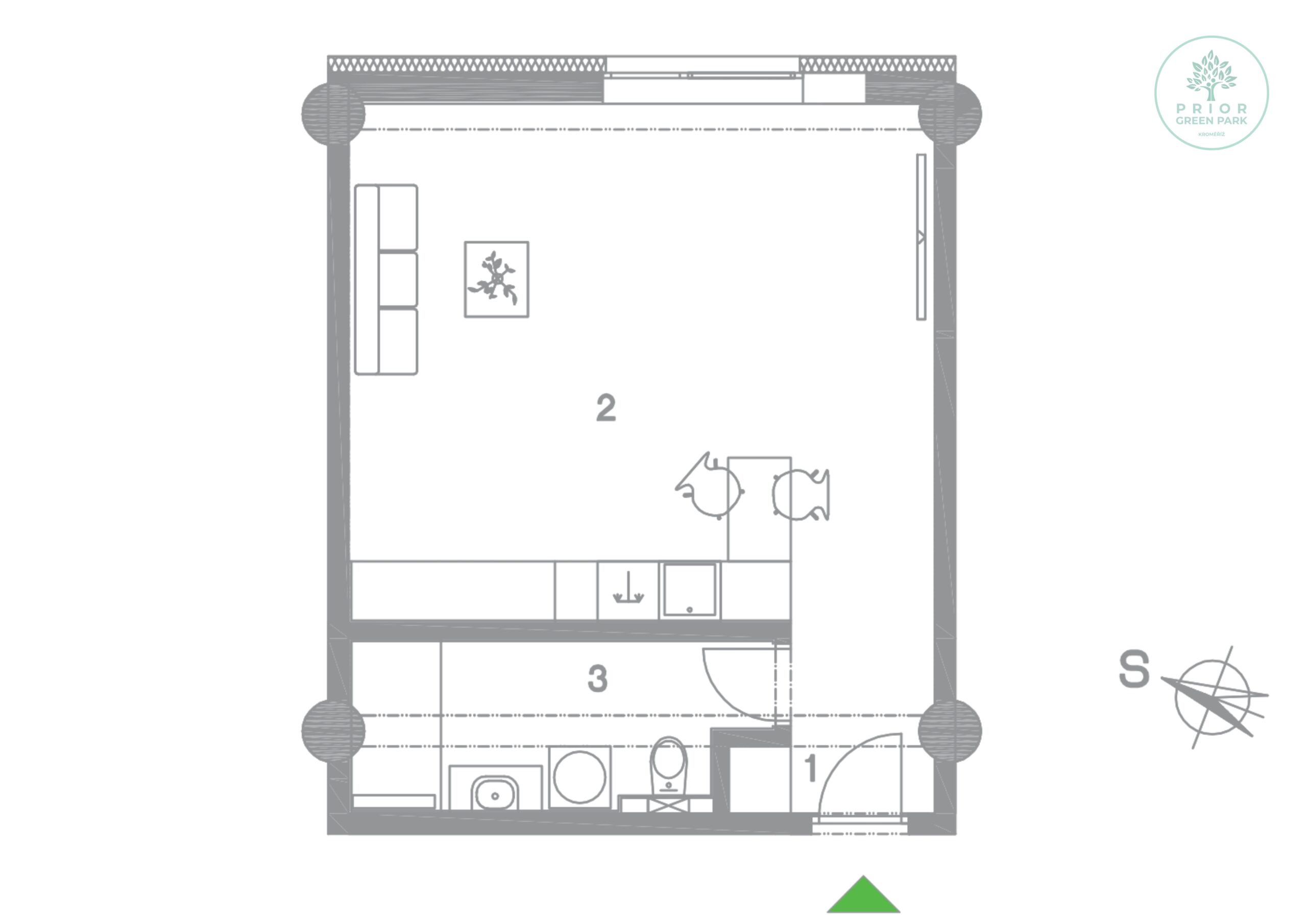 Schéma půdorysu bytu představuje předpokládané dispoziční řešení. Kuchyňské linky, nábytek a interiérové doplňky nejsou předmětem dodávky. Výměry jednotlivých místností jsou pouze orientační. Investor se tímto nevzdává práva na případné úpravy či doplnění marketingového materiálu.