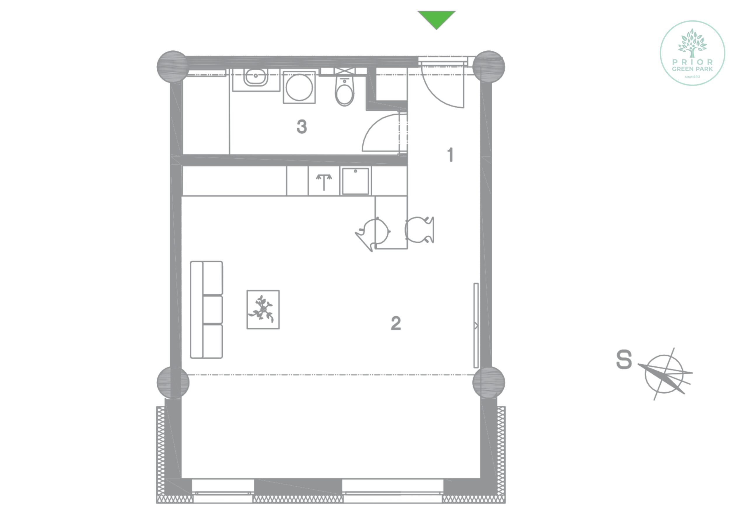 Schéma půdorysu bytu představuje předpokládané dispoziční řešení. Kuchyňské linky, nábytek a interiérové doplňky nejsou předmětem dodávky. Výměry jednotlivých místností jsou pouze orientační. Investor se tímto nevzdává práva na případné úpravy či doplnění marketingového materiálu.